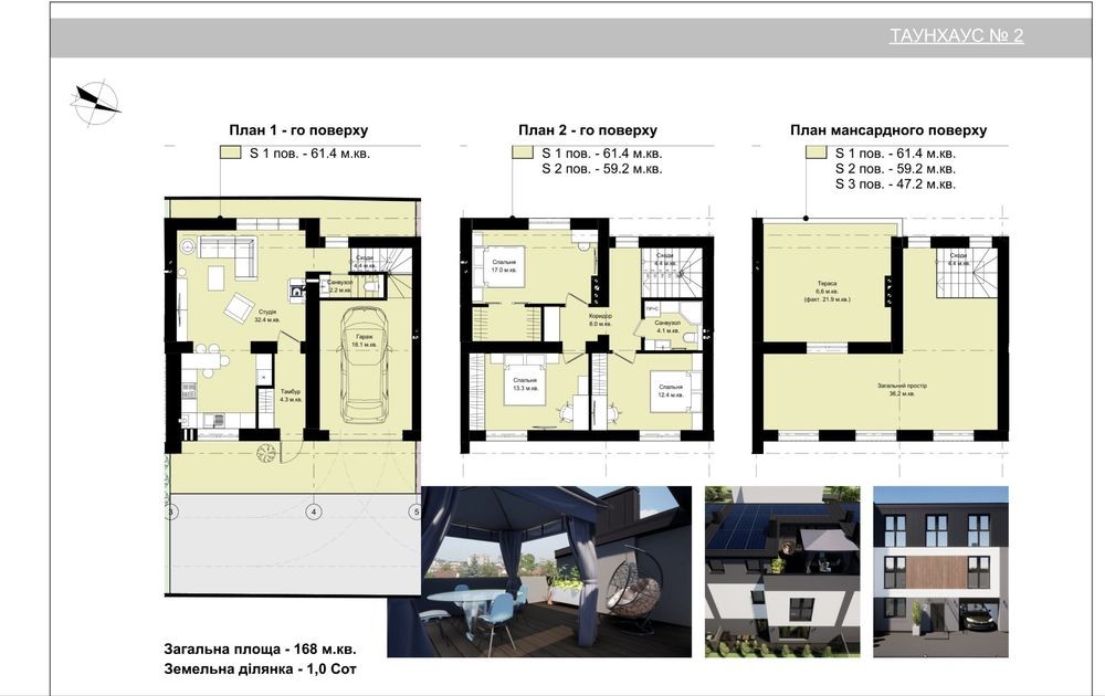 Площа 168м2, 3 поверха, 5 кімнат