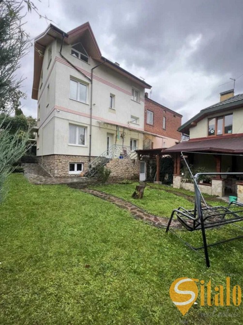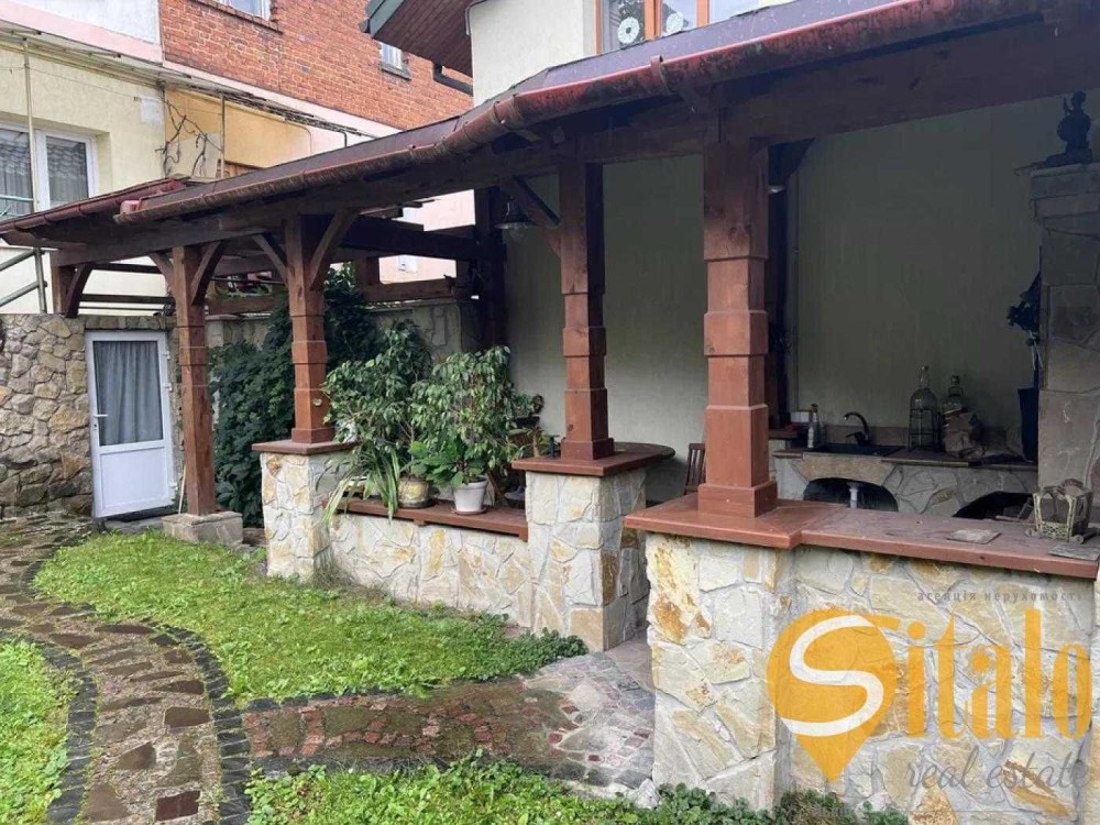 3 поверховий елітний будинок з ремонтом, розташований на вулиці Академіка Рудницького (бокова вулиці Коновальця), Львів. Земельна ділянка 3 сот, огороджена, в'їзд через металеві ворота, право власності. Львів. Територія впорядкована, частково замощена тротуарною плиткою, частково засаджена. Є можливість припаркувати 2 авто. Позаду будинку збудовано літню кухню із зоною барбекю, альтанкою і мангалом. Під будинком власний підвал, площею більше 50 м².