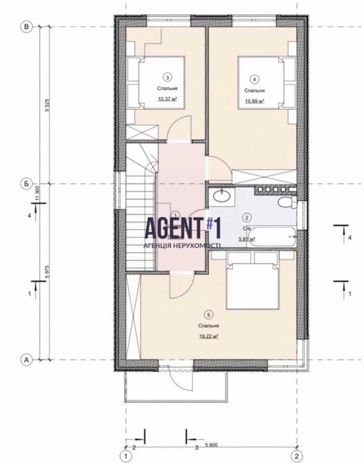 - на другому поверсі : дві дитячих кімнати, спальна кімната з балконом та ванна кімната.