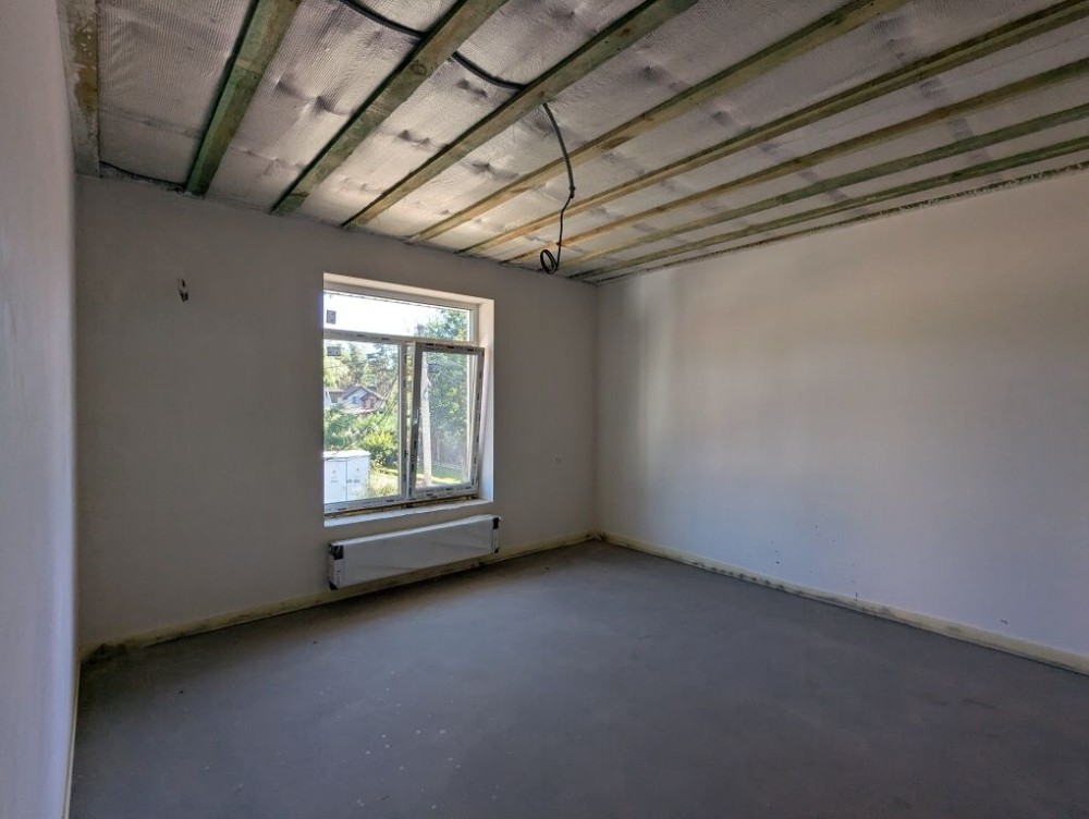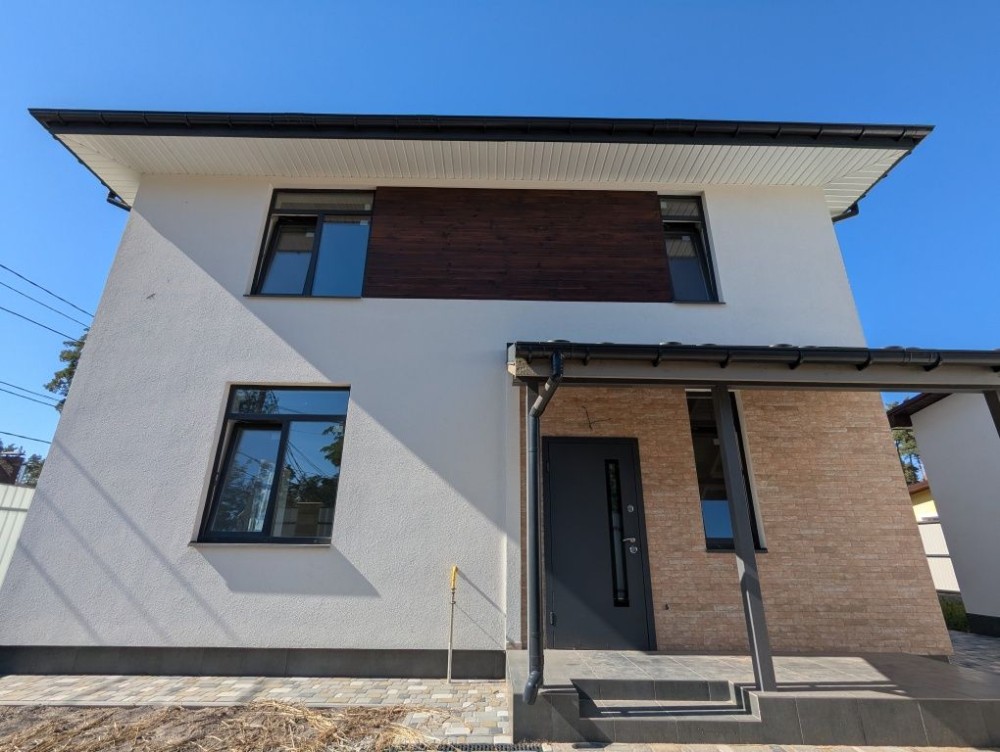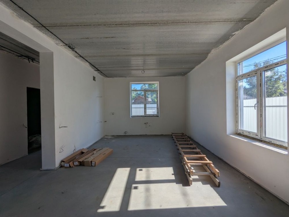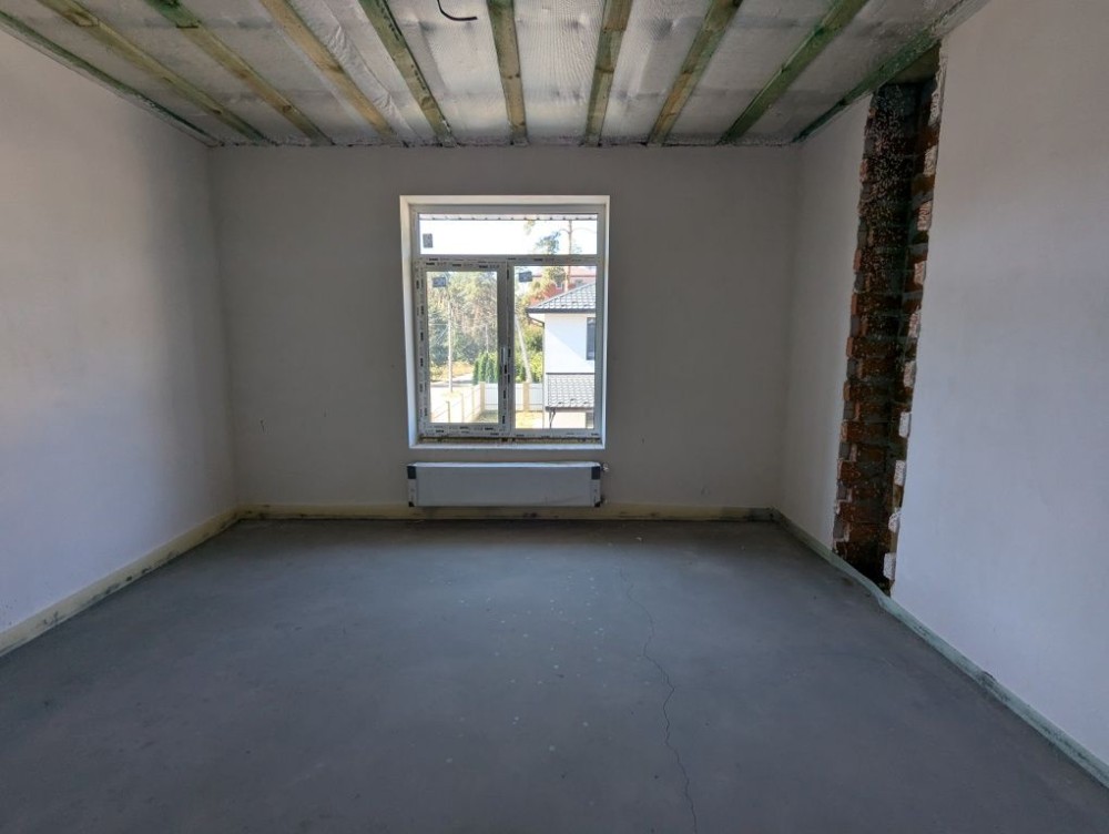 В будинку зроблено лазерну стяжку підлоги, чистову штукатурку стін, розведено водяну теплу підлогу, розведено електрику та сантехніку по точкам, на другому поверсі встановлено радіатори опалення, утеплений мінватою дах.