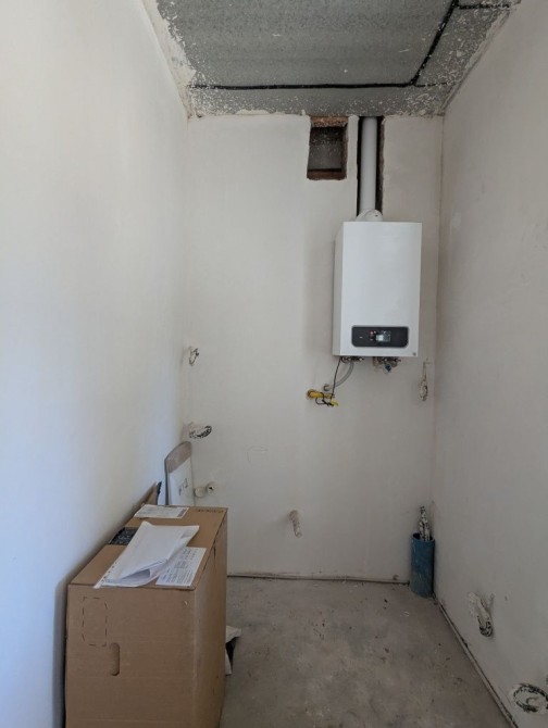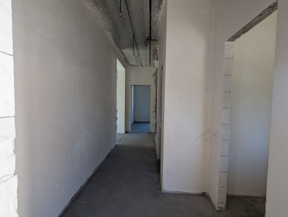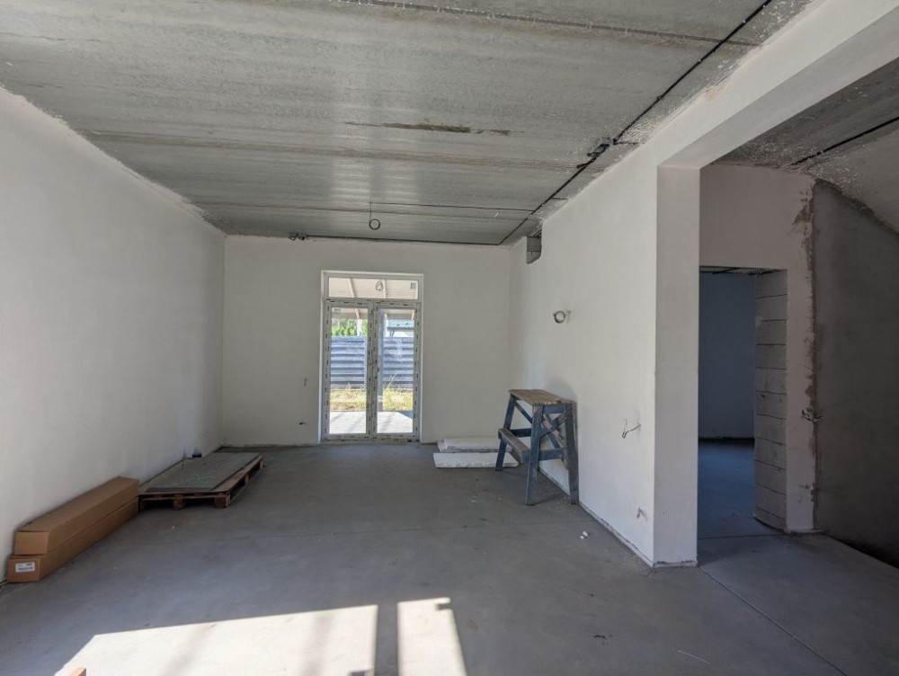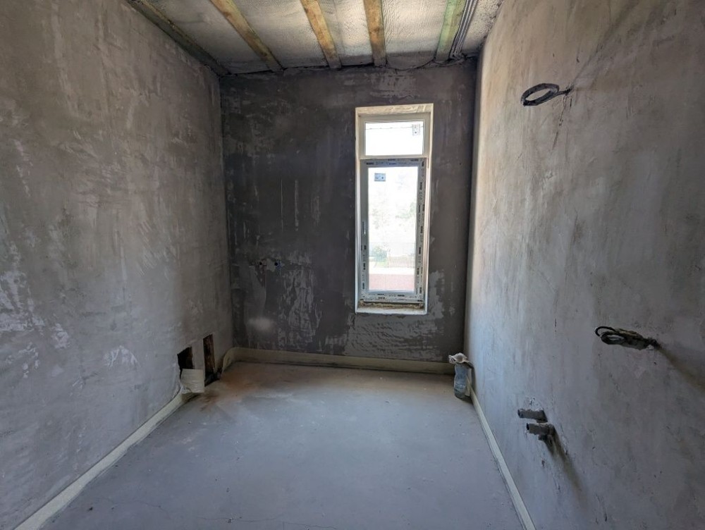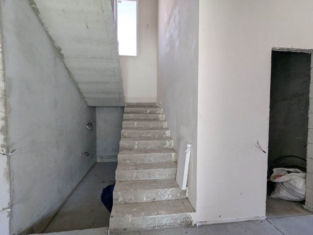 В будинку зроблено лазерну стяжку підлоги, чистову штукатурку стін, розведено водяну теплу підлогу, розведено електрику та сантехніку по точкам, на другому поверсі встановлено радіатори опалення, утеплений мінватою дах.