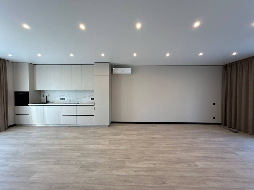 * Дуже гарний та сучаний та світлий ремонт, продумане та зручне планування: 3 світлі та просторі кімнати з великими вікнами, два санвузли та кухня студія.