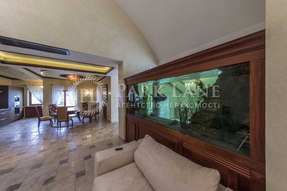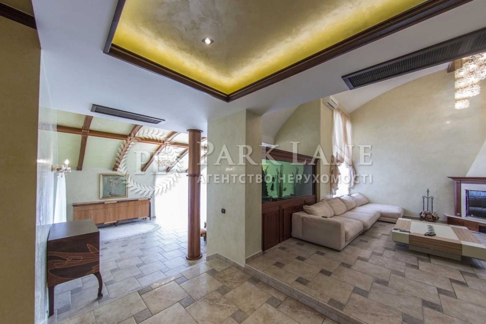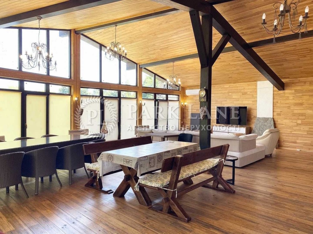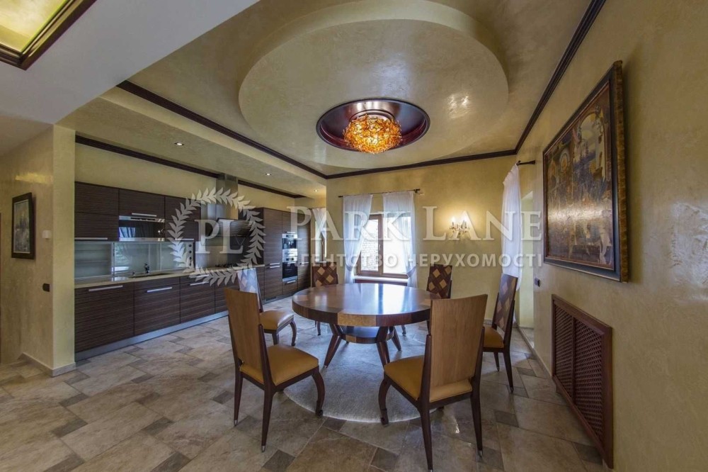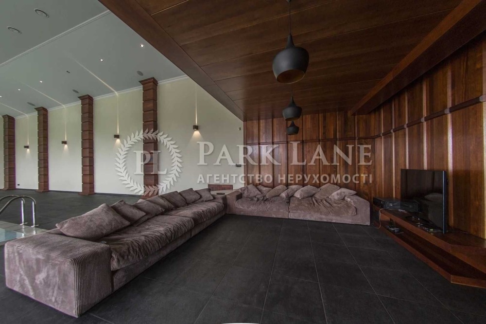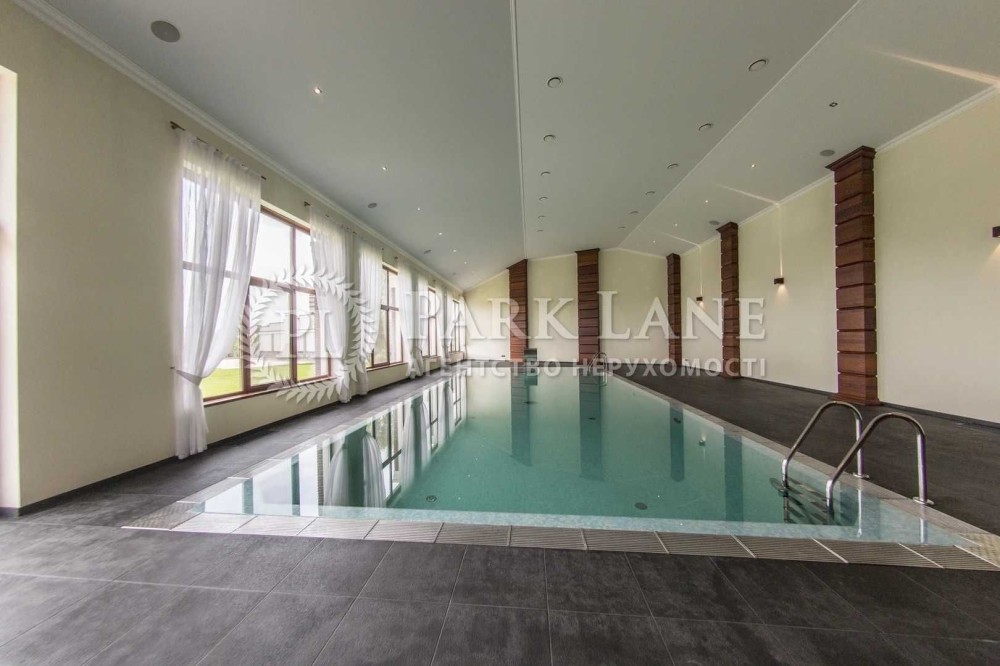 Конча-Заспа. Оренда будинку в котеджному містечку. Основний будинок - 495м2, вітальня з каміном, 4 спальні, підлога- червоний пакет, 4 сан.вузли, SPA зона: (критий басейн - 275м2, сауна, зона відпочинку), система "розумний будинок", гараж на два авто. Земельна ділянка 75 соток, газон, авто полив, прямий вихід на Дніпро, додаткові будівлі на ділянці: будинок для банкетів, "Грот" - 220м2, (більярдна, камінна зала, винна кімната), дерев'яна лазня на Дніпрі, будинок для персоналу 100м2, погріб -100м2, будинок для охорони -120м2. Власне ТП 150 кВт. Дизель генератор на 25 кВт.