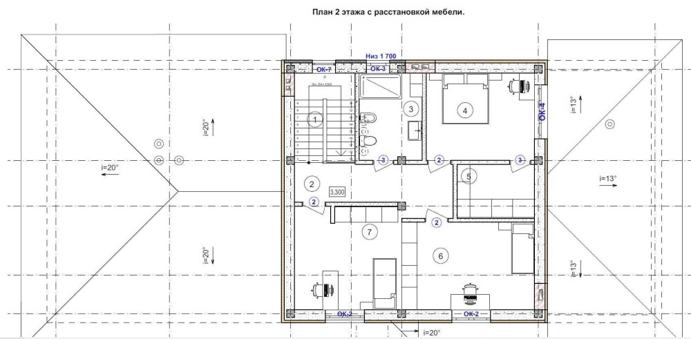 2 поверх - 3 кімнати, санвузол, гардероб.