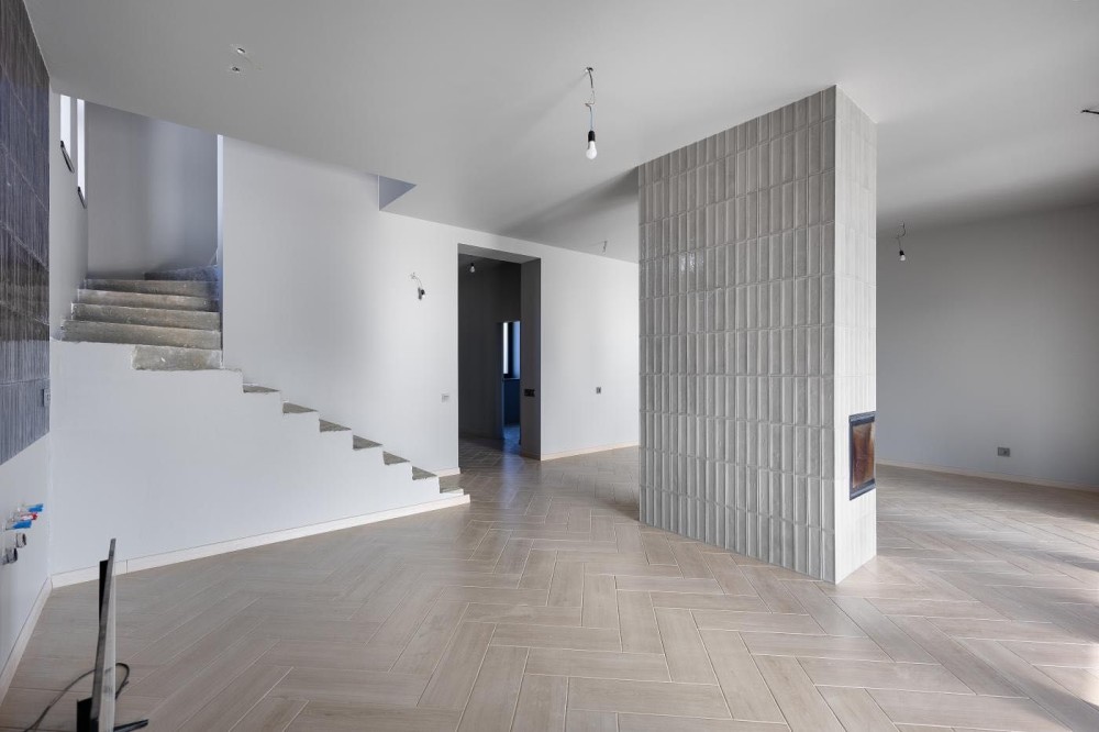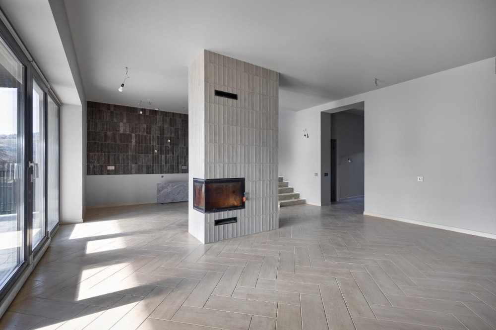 Вікна — VEKA, 8-камерні, енергоефективні. Камін із розведенням тепла по кімнатах та загільзованими виходами. Виводи під відеонагляд. Автоматичні ворота у гаражі та на в’їзді. При в’їзді облаштовано водовідведення. Зарядка для електромобіля — 3 фази.