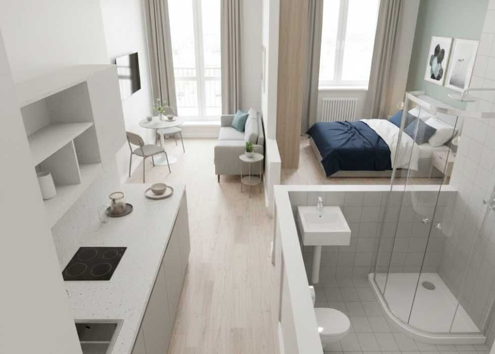 світлі, просторі квартири з панорамними вікнами;