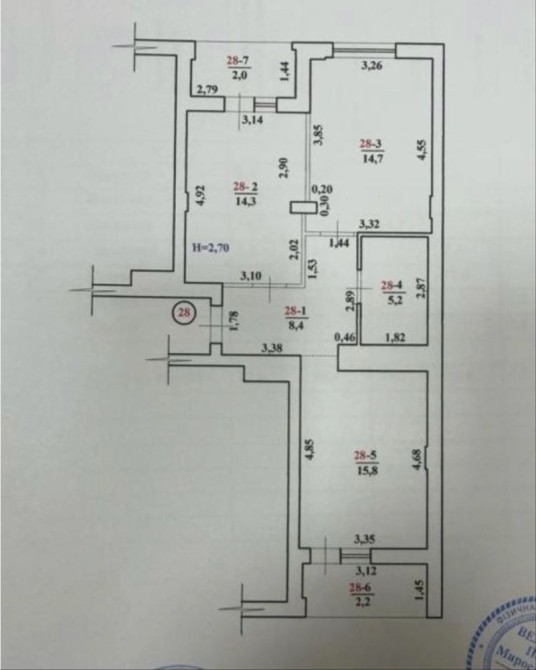 - Висота стель — 2,9 м