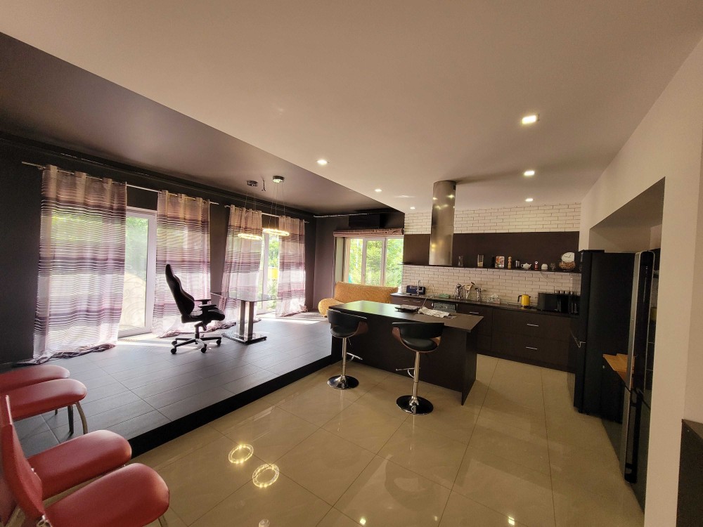 На території тераса з зоною відпочинку та барбекю, власний ставочок з рибками, до будинку прибудоване приміщення: критий басейн з зоною відпочинку.