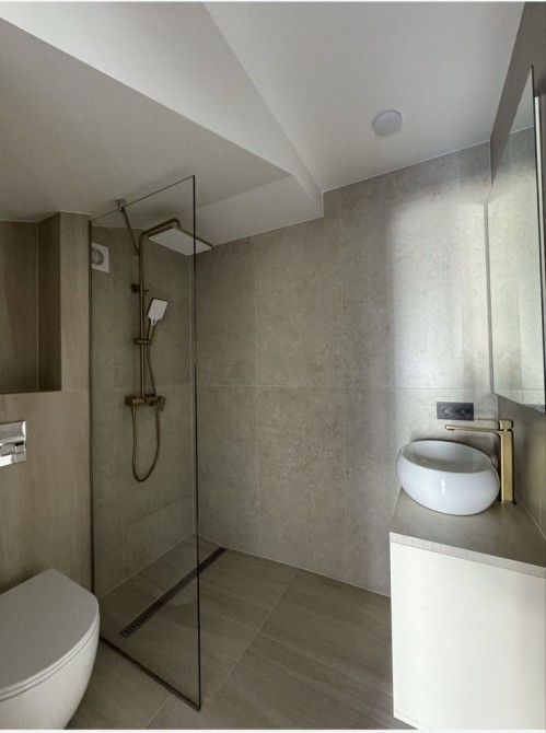 1 поверх – кухня, обідня зона та простора вітальня з виходом на власну терасу, гостьовий санвузол із душовою.