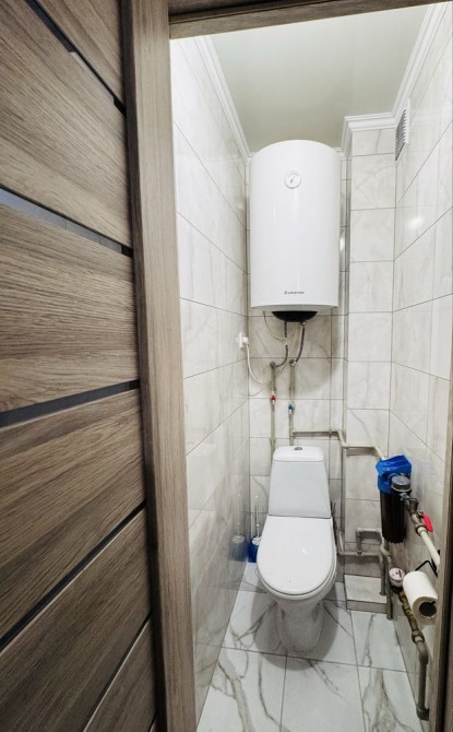 - роздільний санвузол з сучасною плиткою , встановлені душова кабінка , є бойлер
