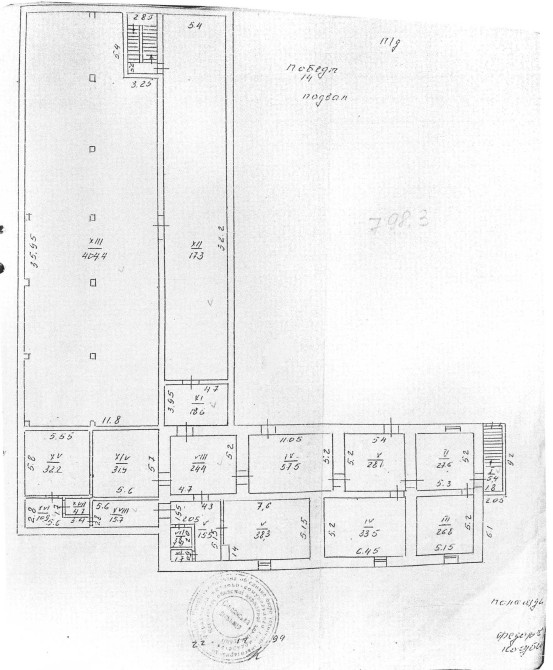 Адміністративна будівля складається з двох поверхів та підвалу, загальною площею 2368,5 м2: (підвалу –798,3 м2, 1-го пов. – 786,3 м2, 2-го – 783,9 м2)та вміщує приміщення різного функціонального призначення, а саме: