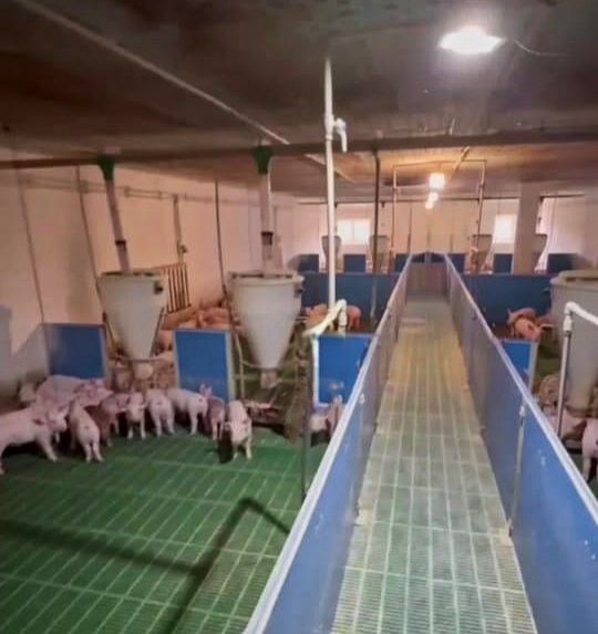 Два приміщення для тварин по 1420 м², кормоцех - 1158 м², обладнані автоматичною системою вентиляції та кормороздачі.