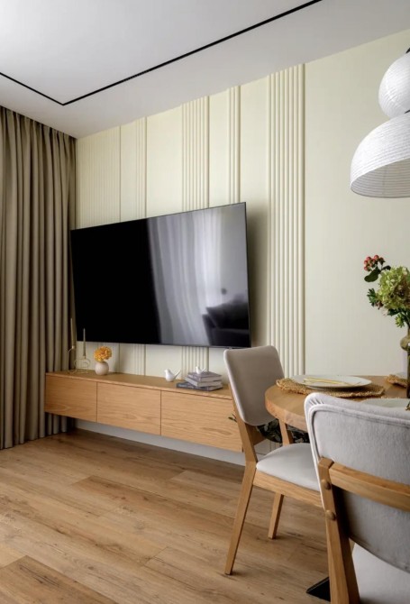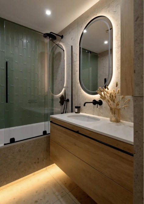 Квартирі виконаний сучасний дизайнерський ремонт (червні 2024 року), повністю укомплектована всім необхідним для комфортного життя (великий вбудований холодильник на 400л, посудомийна машина, духова шафа, мікрохвильовка, 3 кондиціонери, пральна машина, сушильна машина, 2 телевізори, бойлер на 100л, пом’якшувач води, який забезпечує м’яку й чисту воду, вбудовані меблі, кухня та зручна гардеробна)