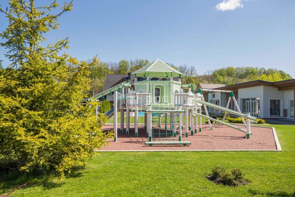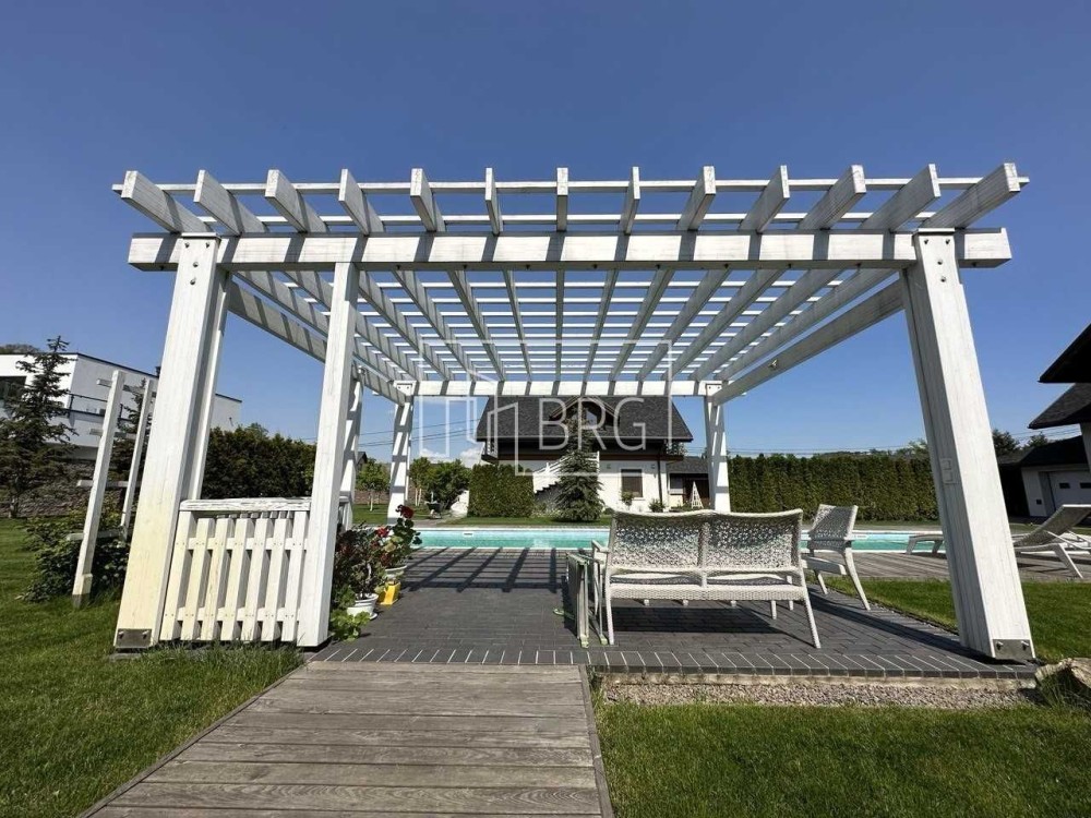 На территории: Ландшафтный дизайн, барбекю с профессиональным оборудованием, открытый бассейн с подогревом воды солнечными батареями, детская площадка. На участке заложен молодой плодоносящий фруктовый сад.