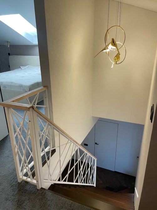 -Сходи: металевий каркас із дерев’яними сходинками, сучасні перила ручної роботи.