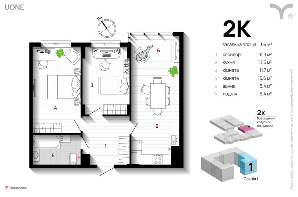 • Загальна площа 64.4 м2