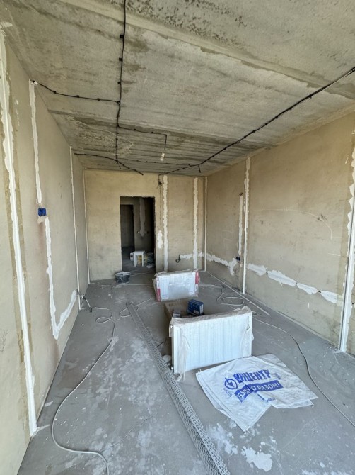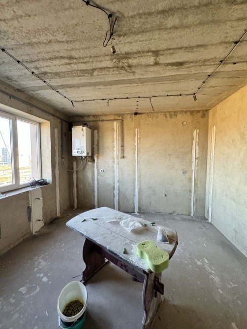 Стан після будівельників. Автономне опалення: встановлений двухконтурний турбо котел, підключені сталеві панельні радіатори, є рушникосушка.