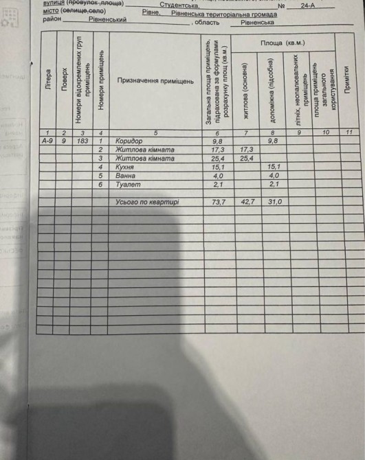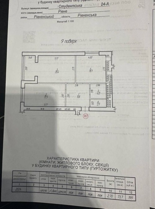 Загальна площа – 73,7кв.м