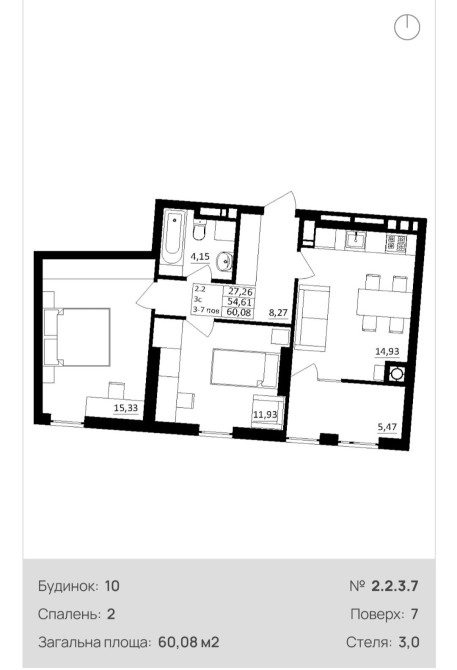 • Загальна площа 60.08 м2