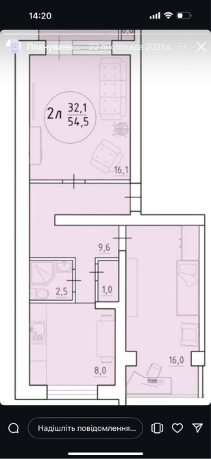 • Загальна площа 54 м2
