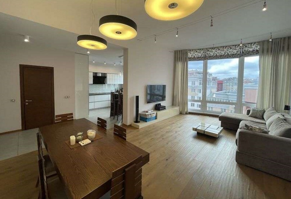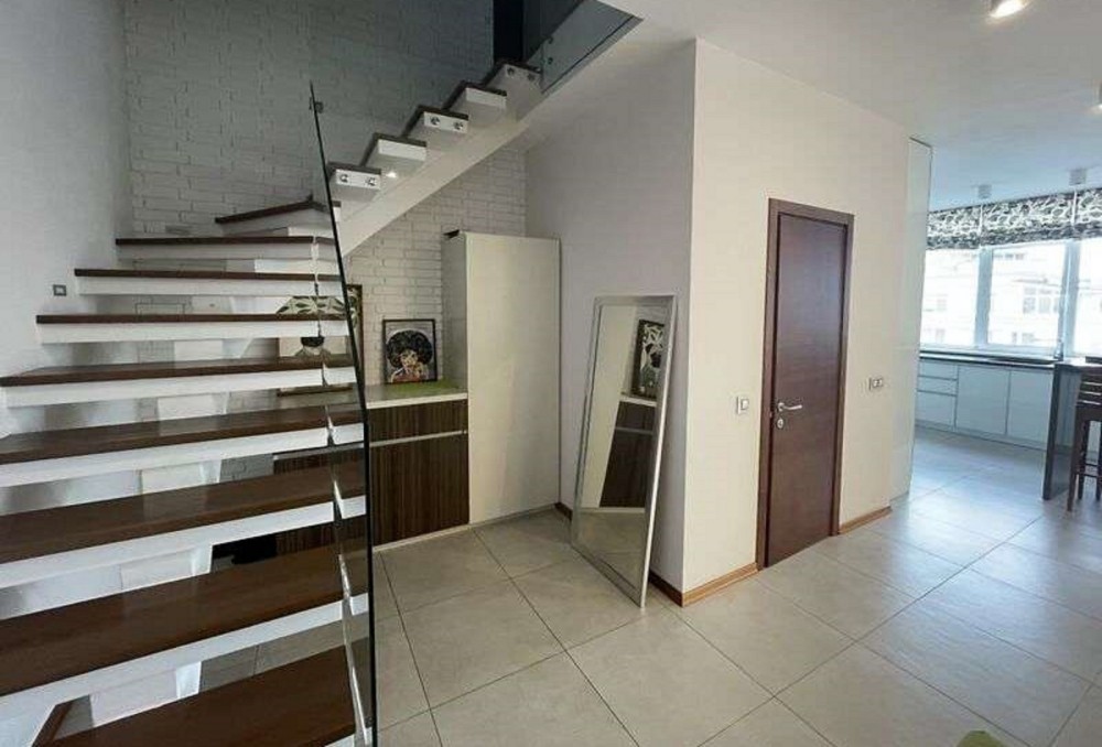 Продаж видової дворівневої 4-кімнатної квартири 203, 3 м2 з дизайнерським ремонтом та красивим панорамним видом на 16-17 поверхах 17-поверхового будинку відкритою терасою 107, 6 м2 в житловому масиві «Ліко-Град». У 2021 року зроблено новий ремонт, вся техніка світових брендів. Правильне раціональне планування: на першому рівні, з холу вихід в простору світлу вітальню з великим сімейним столом, кухня-студія із сучасною побутовою технікою, санвузол. На другий рівень ведуть витончені сходи з натурального дерева, тут дитяча мебльована дитяча кімната з двома дитячими ліжками з великим гардеробом та виходом на відкриту терасу площею 107 м2, спальня з гардеробом, санвузол, кімната з каміном і домашнім кінотеатром також має вихід на терасу. Високі стелі, панорамні вікна з видом на місто, у квартирі світло, сонячно та тепло взимку. Авторський дизайнерський проект, поєднання кольорів, фактури матеріалів, якісні меблі, сантехніка, побутова техніка найкращих виробників забезпечують комфорт. Тераса з японським вентильованим фасадом. На терасі є все для відпочинку: мангал з цегли, стіл з натурального дерева на 6 персон, меблі з натурального ротангу, мийка, 17 м2 накриття. У всіх кімнатах підлога з паркету. У парадному домофон, консьєрж, відеоспостереження, 2 ліфти у дворі підземний та гостьовий паркінги, дитячий майданчик, кафе, кав"ярні, магазини, салон краси , дитячі садочки, аптека. Поруч зупинка громадського транспорту, чудовий парк та сквер, система озер, прекрасні місця для прогулянок. Станції метро Виставковий центр та Васильківська в пішый доступності.