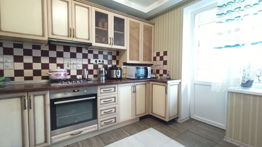 Вдале планування квартири- простопа кухня-вітальня з виходом на лоджію, роздільні кімнати, 2 санвузла.