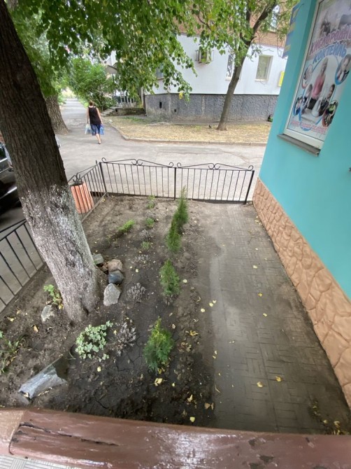 Зручна локація: безпечний 1й поверх 9-поверхового будинку, з іншого боку від проїжджої частини, з виходом на проспект Поштовий. Поруч – бізнес-офіси, кавʼярні, «Аврора», «Єва», «Ґранд-піца», площа Визволення, річка, парки та сквери.