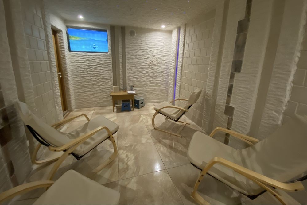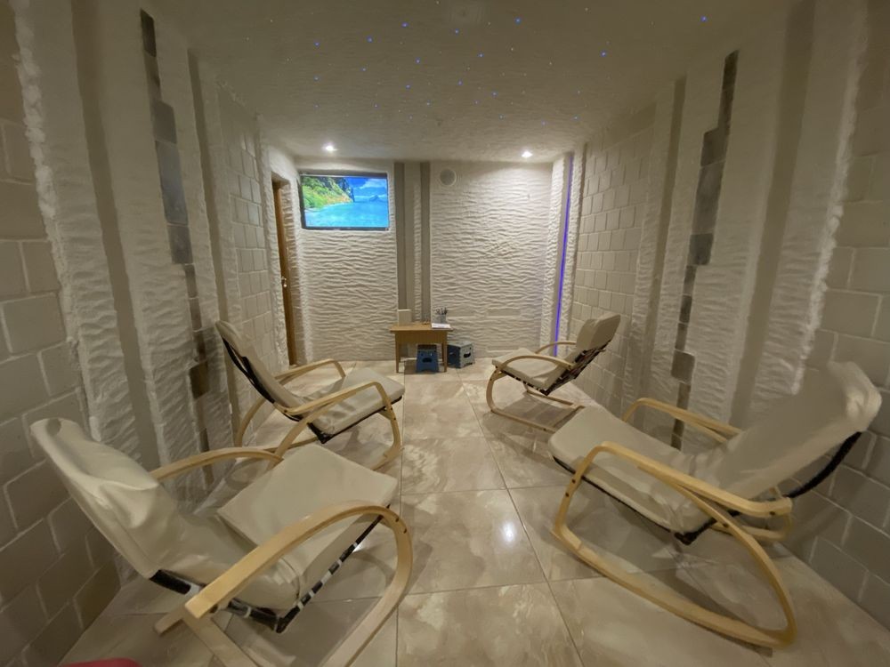 Продам готовий бізнес: приміщення на площі Визволення з кімнатою, повністю обладнаною для ГАЛОТЕРАПІЇ (на 6-8 місць): галогенератор, товща солі на стінах і стелі в 6тонн (лікувальна сіль з Соледару), соляні блоки. Приміщення продається з усим обладнанням, технікою та меблями, як на фото.