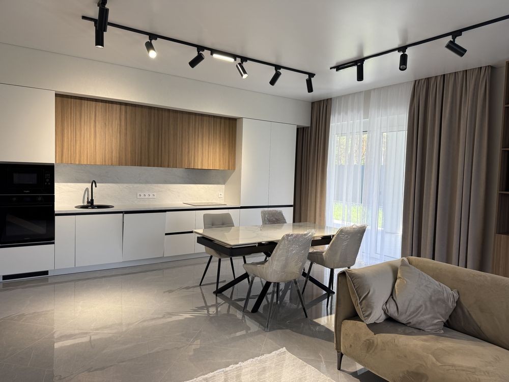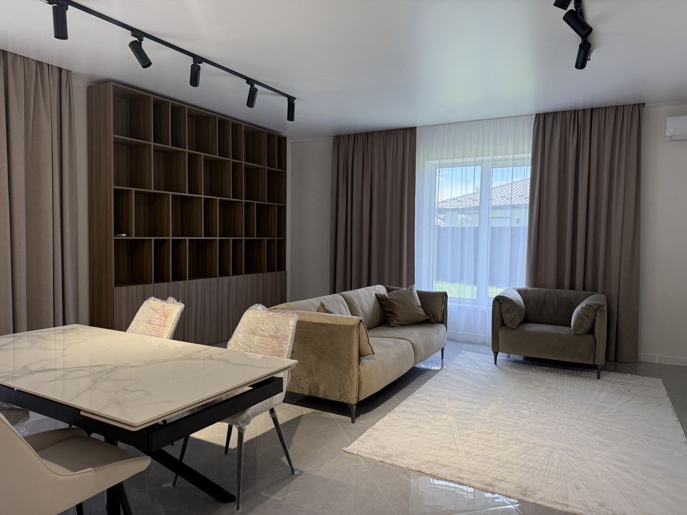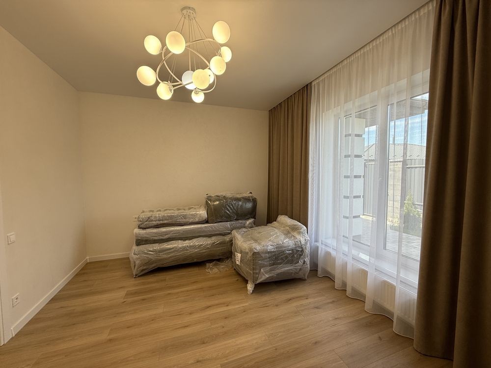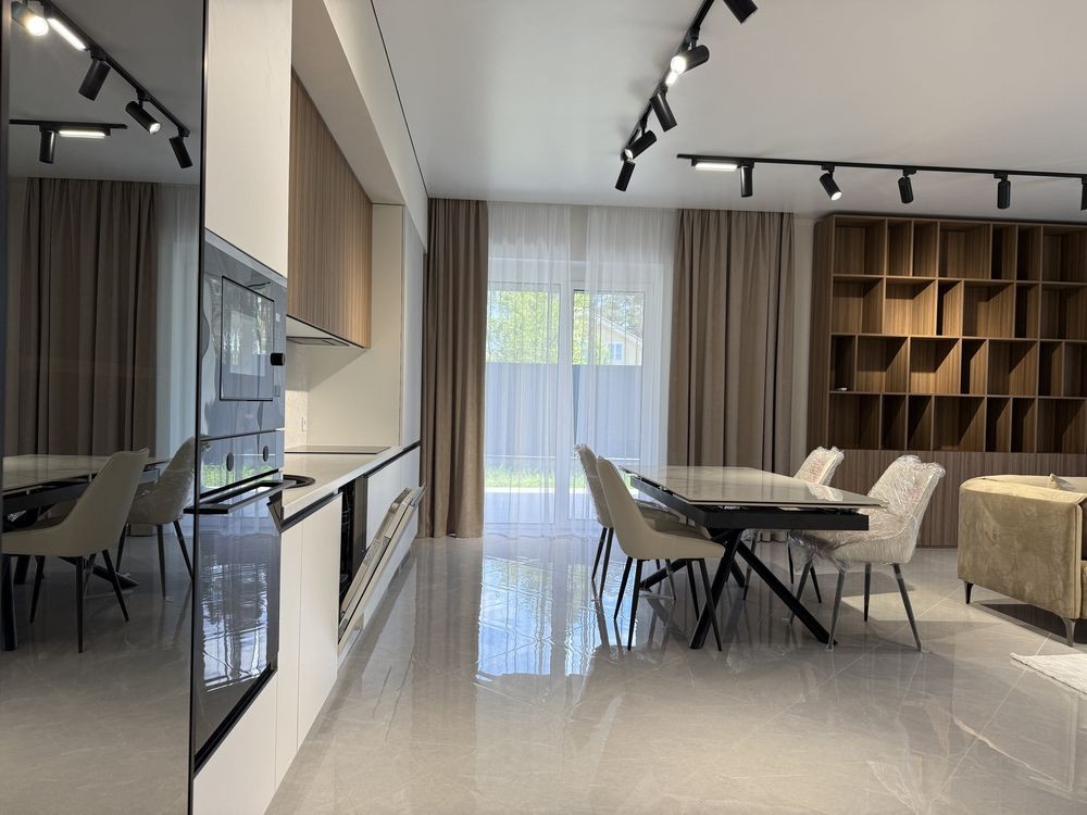 Продаж стильного будиночку в закритому котеджному містечку в Лісовій Бучі в оточенні дерев. Будинок зі стильним ремонтом на 7.5 сотках, загальна площа 150м2. На території ландшафтний дизайн, висаджені туї, затишний дворик з великою терасою для сімейних вечорів з барбекю. Побудований будинок з газоблоку 300, утеплений пінопластом, заведено 16квт електрики, центральна каналізація, власна свердловина. В будинку є тепла підлога скрізь, окрім кімнат. При вході в будинку коридор, праворуч гардеробна, ванна кімната, прямо велика кухня студія, ліворуч зона спалень з гардеробними. Загалом в будинку 3 гардероби, 3кімнати, 2 санвузли. Можливо цей будинок чекає саме на вас! Телефонуйте і записуйтесь на перегляд. В продажу є такий самий будинок без ремонту.