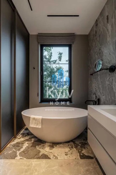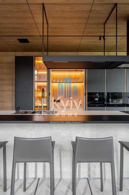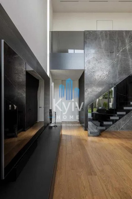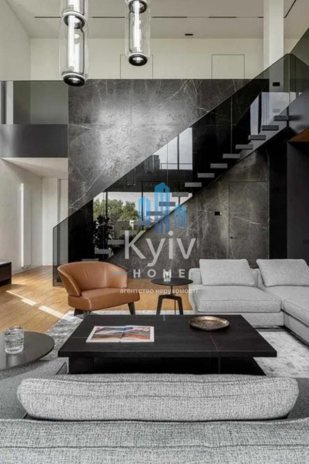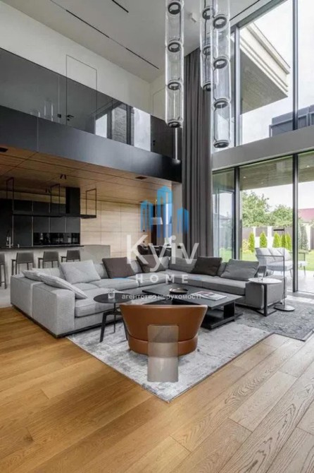 Будинок з двома терасами, з каміном та дизайн інтер'єру в сучасному стилі, тільки з натуральних матеріалів. Панорамні вікна та багато сміливих рішень в інтер'єрі. Кухня з гігантським островом із керамограніту, підрізаним під кутом 45 градусів. Меблі із захисним покриттям від відбитків пальців. Техніка Miele, лише посудомийна машина Bosch.