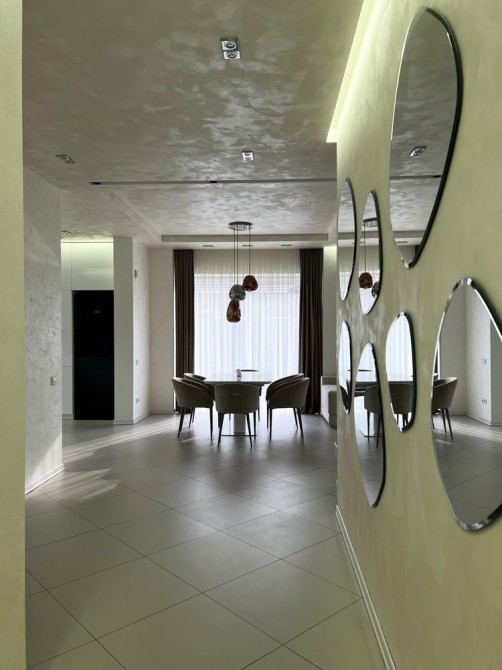 Інтер’єр виконано за авторським дизайнерським проєктом із використанням італійських матеріалів.