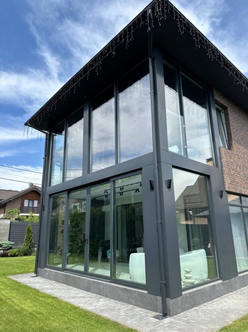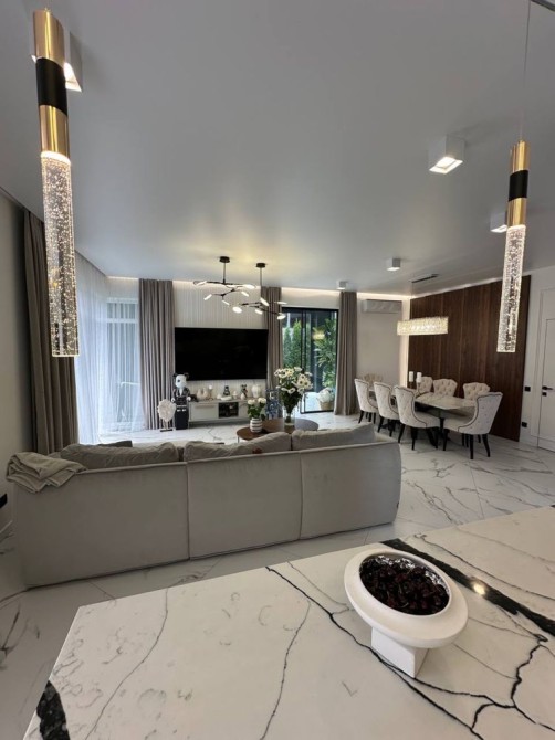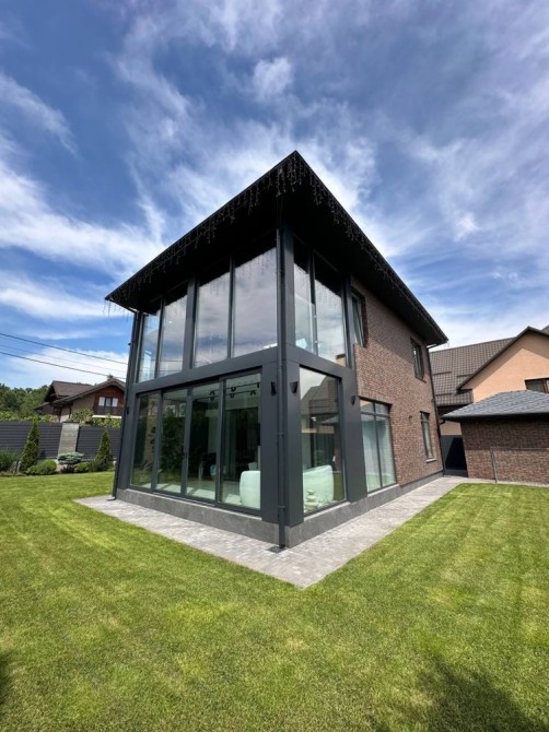 Продуманий і лаконічний сучасний інтер`єр. Ремонт робили для себе, виконаний професіоналами дуже якісно. 4 кімнати, 2 санвузли, велика кухня-вітальня з виходом на розкішну скляну терасу + тренажерний зал на 2 поверсі.