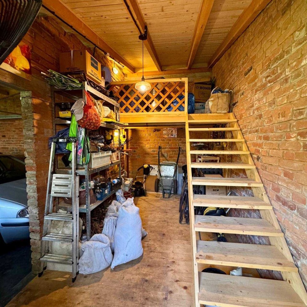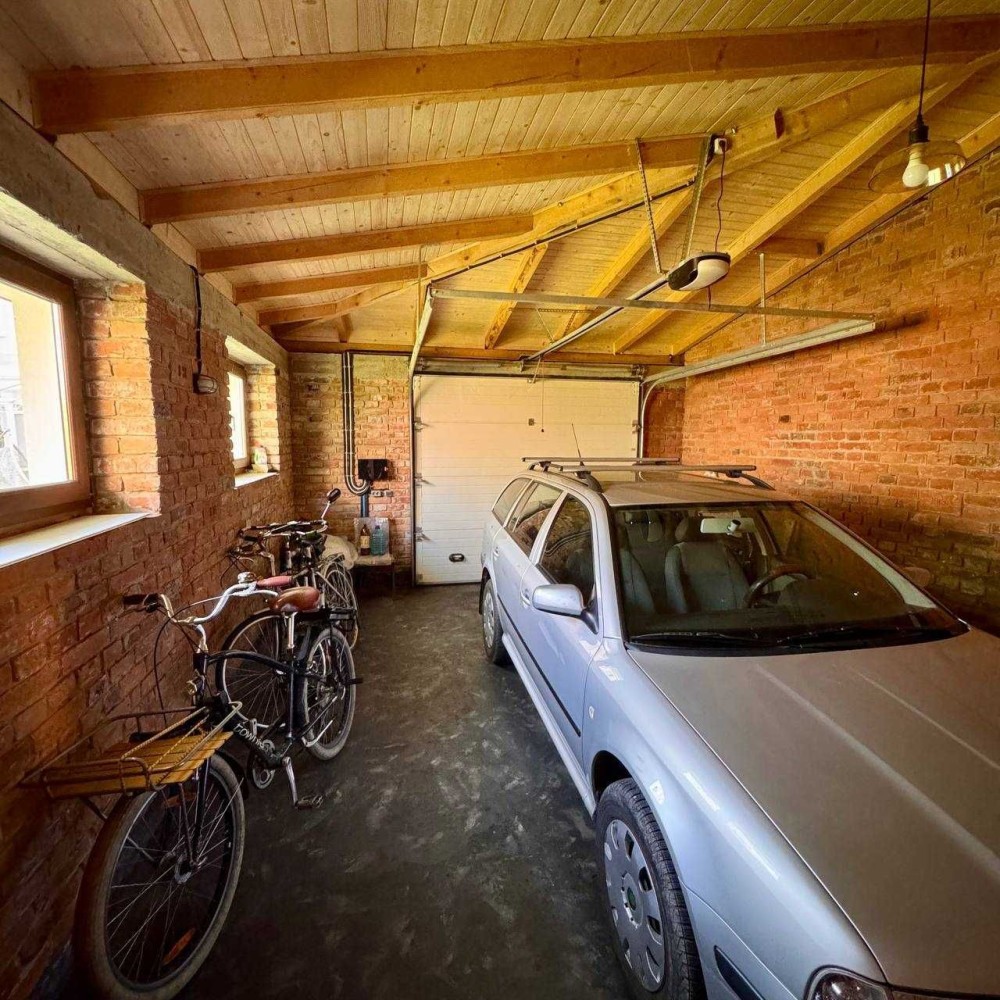• Просторий гараж із автоматичною брамою та підсобним приміщенням, внутрішнє оздоблення — австрійська цегла