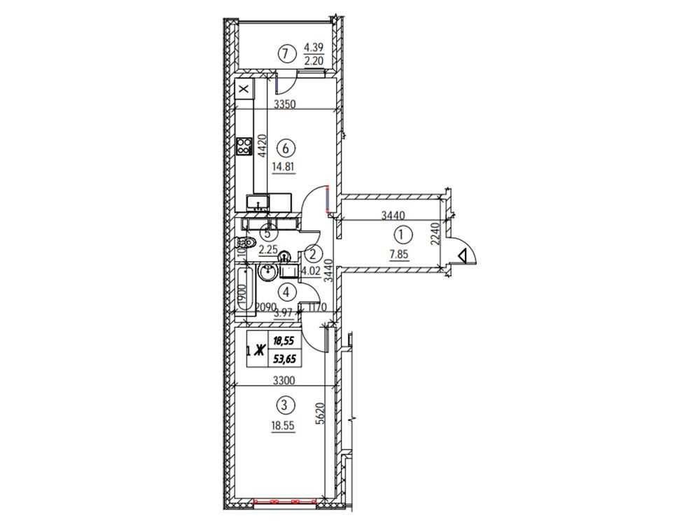 Зручне та функціональне планування площа: 53.65/18.55/15 кв.м.