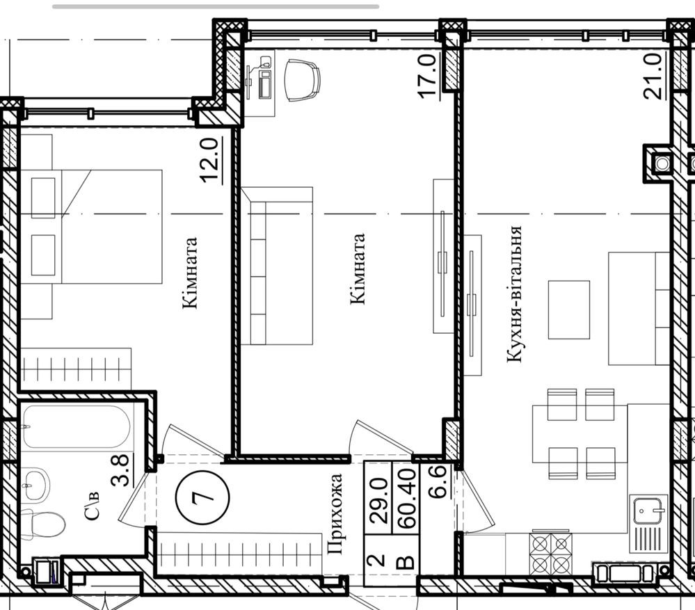 • Загальна площа 60.4 м2
