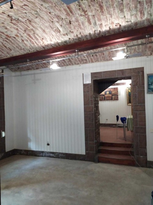 Загальна площа приміщення 110м.кв. (3 великі кімнати і 4 малі). Вхід з Костомарова. Напівцоколь.