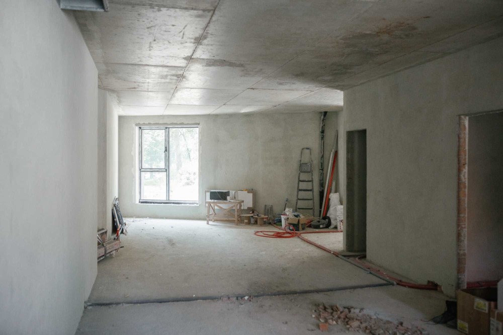 Встановлений котел Vaillant, алюмінієві панорамні конструкції Aluprof, радіатори Kermi та заведені всі комунікації без розводки.