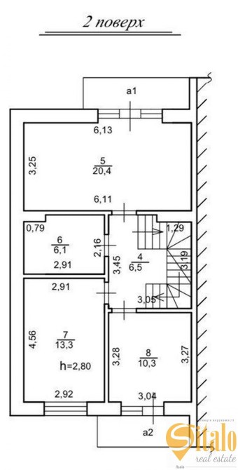 На другому поверсі — три ізольовані кімнати, дві з яких мають вихід на балкон, а також санвузол.
