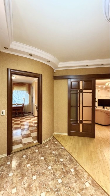 Пропонується дворівнева квартира з терасою та видом на Дніпро ЖК Seven Осокорки — унікальний варіант для тих, хто цінує простір, комфорт і панорамні краєвиди столиці. Квартира розташована на 25–26 поверхах 26-поверхового будинку за адресою: Дніпровська набережна, 20А. Загальна площа — 139 м2, житлова — 63 м2. Це простір, створений для великої та щасливої родини. Перший рівень: – просторий хол — 9 м2; – кухня-вітальня — 44 м2 із панорамними вікнами від підлоги до стелі, звідки відкривається захопливий вид на Дніпро; – гостьовий санвузол — 1, 5 м2. Другий рівень: – три спальні: 10, 5 м2, 18 м2 та 23 м2 — кожна з виходом на терасу; – гардеробна — 8 м2; – просторий санвузол — 8, 8 м2; – головна перевага — тераса 35 м2 з панорамним видом на Дніпро та зелені пагорби Києва. Це місце для ранкової кави, вечірніх посиденьок і затишних зустрічей. Квартира світла, сонячна, з великими вікнами та сучасним плануванням. Інфраструктура ЖК Seven: Комплекс закритого типу з цілодобовою охороною та підземним паркінгом. Усередині — затишний двір із дитячими та спортивними майданчиками, зеленою зоною та доріжками для прогулянок. У пішій доступності: ТЦ River Mall, ТЦ Аркадія, супермаркети Novus і Сільпо, ресторани, набережна Дніпра. Зручна транспортна розв’язка та близькість метро Осокорки роблять локацію ще привабливішою. Чому варто обрати саме цю квартиру? – дворівневе планування з чітким розділенням на зони; – простора кухня-вітальня для зустрічей і свят; – велика тераса з панорамою на Дніпро й Київ; – сучасний ЖК з продуманою інфраструктурою. Дворівнева квартира з терасою та видом на Дніпро ЖК Seven Осокорки – не просто квадратні метри — це простір для життя, відпочинку й натхнення. Не втрачайте шанс — такі квартири в ЖК Seven з’являються рідко!