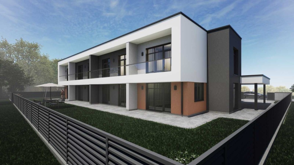 Продається таунхаус в одній із найкращих локації села Микитинці по вулиці Вишнева. Кутовий із більшою земельною ділянкою площею 3,3 сот. Площа будинку 137 м.кв. Сучасне просторе планування. Повноцінних два поверхи. Всі міські комункації – вода і каналізація централізована. Матеріали перекриття між першим і другим поверхами – залізобетонні плити, між другим і дахом - моноліт. На першому поверсі розміщено кухня, яка об’єднана з вітальнею площею 33 м.кв., окрема кімната і санвузол. На другому поверсі три окремі кімнати, гардероб і санвузол. Дах плоский. Будинок ззовні буде утеплений пінопластом та покритий кольором. Внутрішні стіни будуть поштукатурені. Асфальтований підїзд. До центру Івано-Франківська 5 хв на авто. Поруч річка Бистриця. Здача будівельних робіт - І квартал 2027 року. Територія буде оббруківлена та огороджена. Можливість часткового розтермінування!