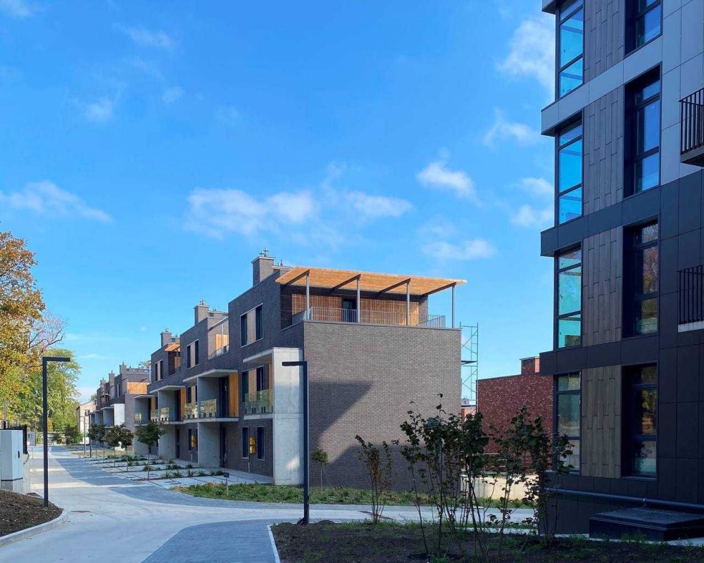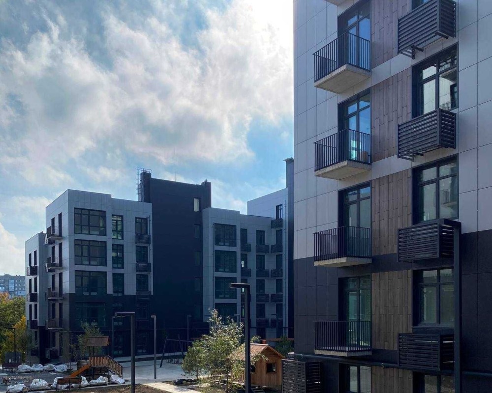 На великій території в 3.6 га, розташовані мало поверхові будинки 6-8 поверхів та 2-3 поверхові таунхауси.