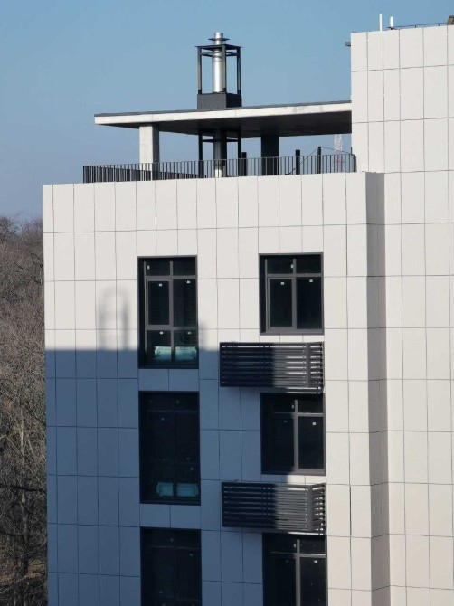 - Декоративна обробка фасаду виконана з керамограніту марки TUBADZIN.