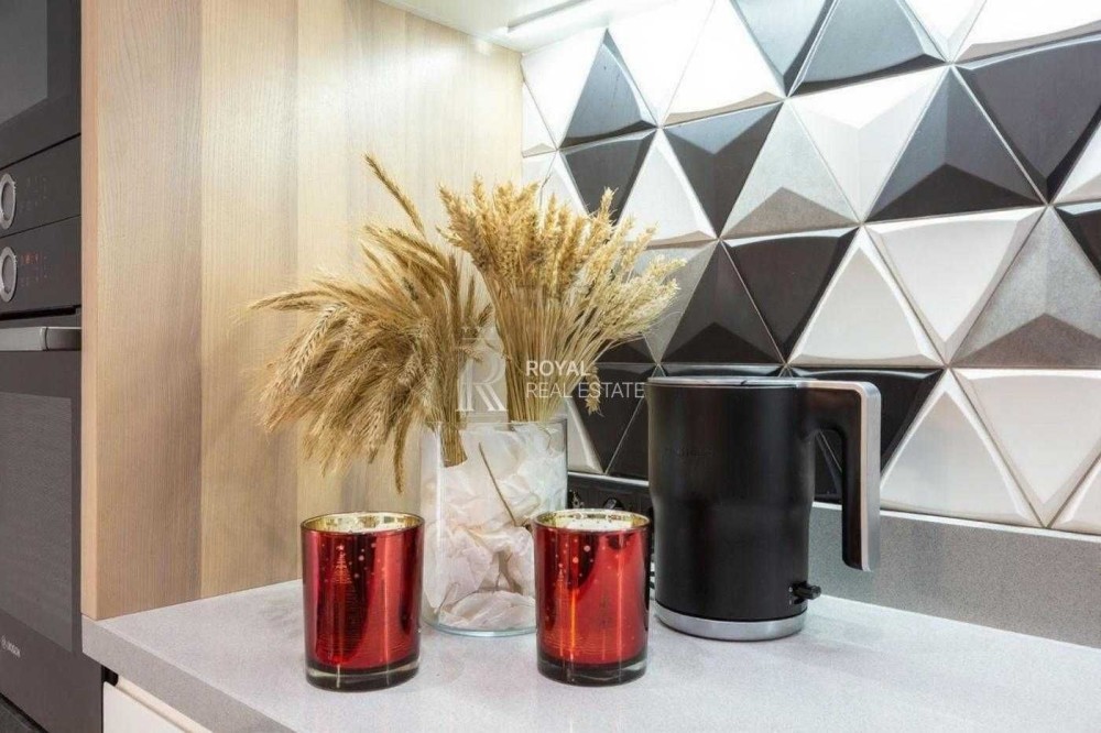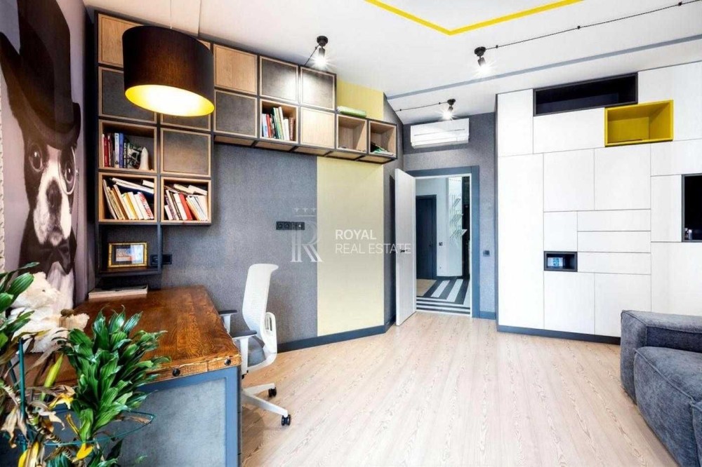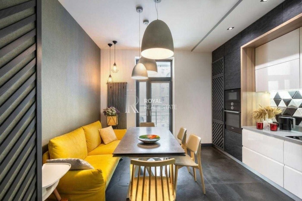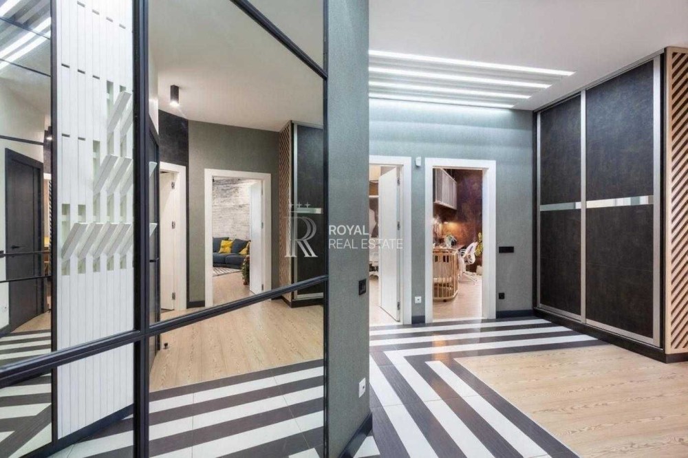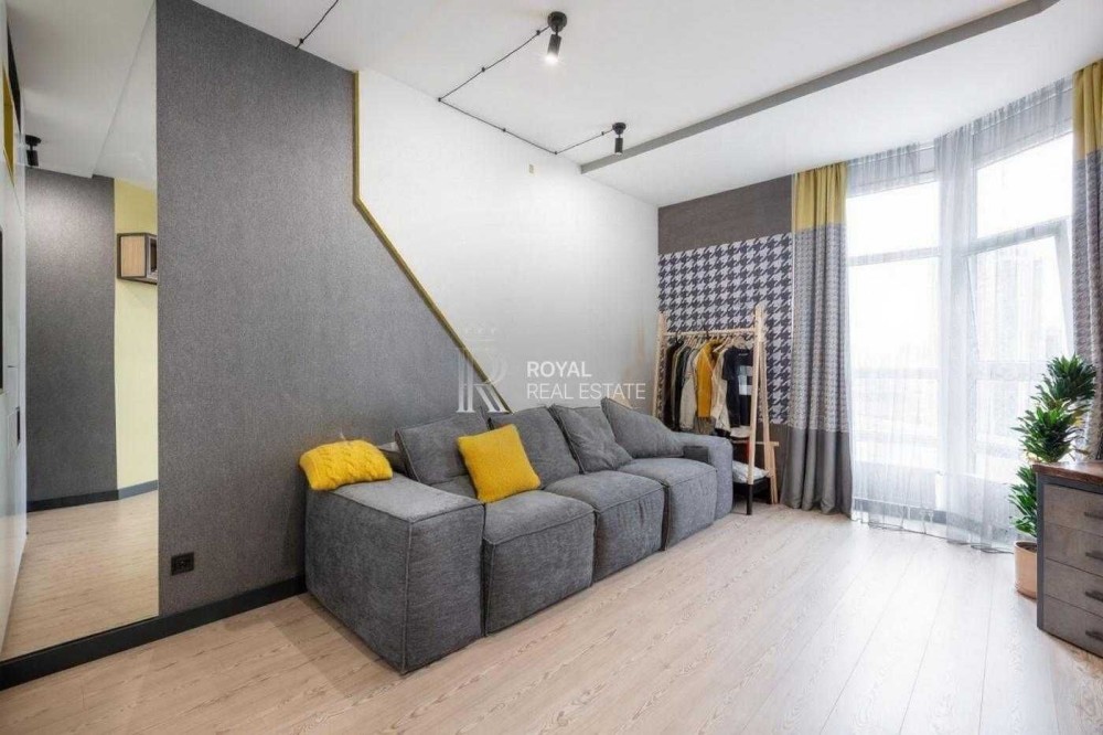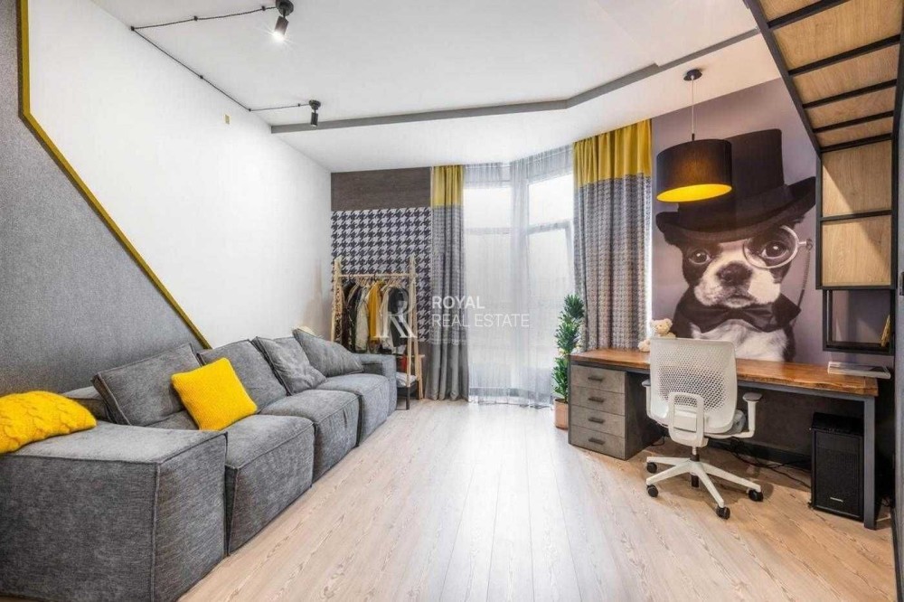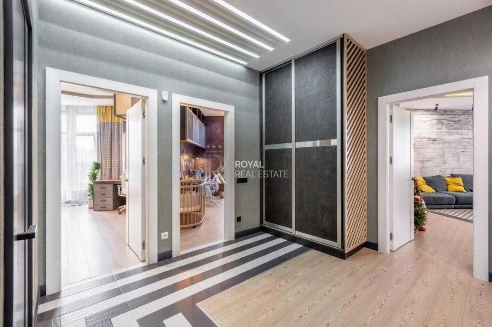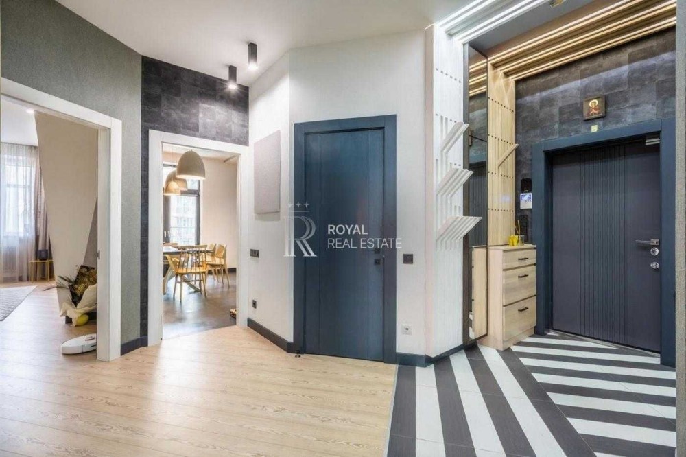 Квартира виконана за індивідуальним дизайнерським проєктом із використанням якісних матеріалів і ретельно продуманого планування. Світлий простір, панорамні вікна та висота стель 3 метри формують відчуття простору та статусного житла.