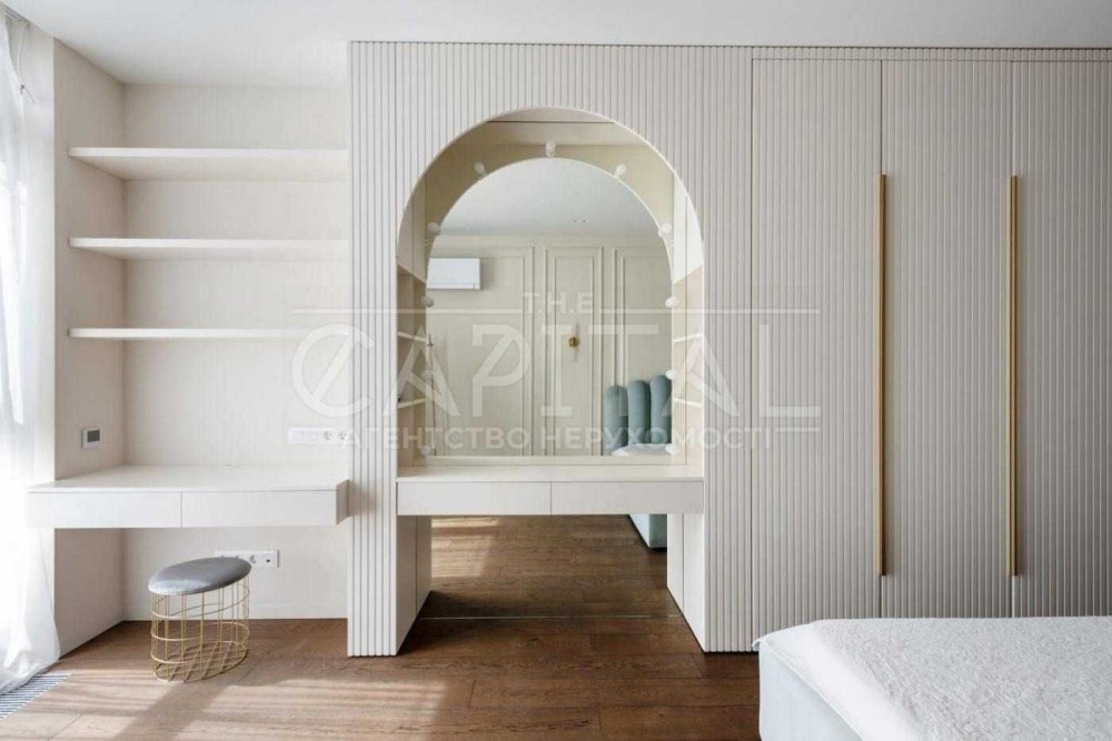 велика кухня поєднана з вітальнею, master bedroom з власною розкішною стильною гардеробною кімнатою та санвузлом, дві додаткові спальні (дитяча, гостьова, додаткова гардеробна, тощо), кабінет, всього в квартирі три с/в, пральна кімната, просторий передпокій.