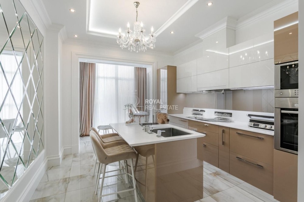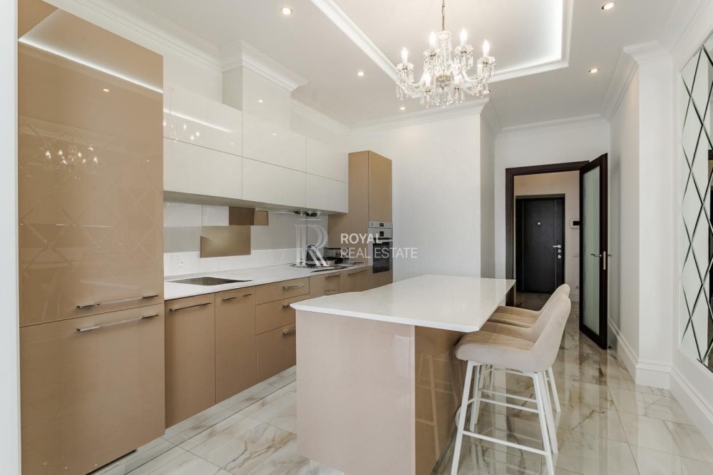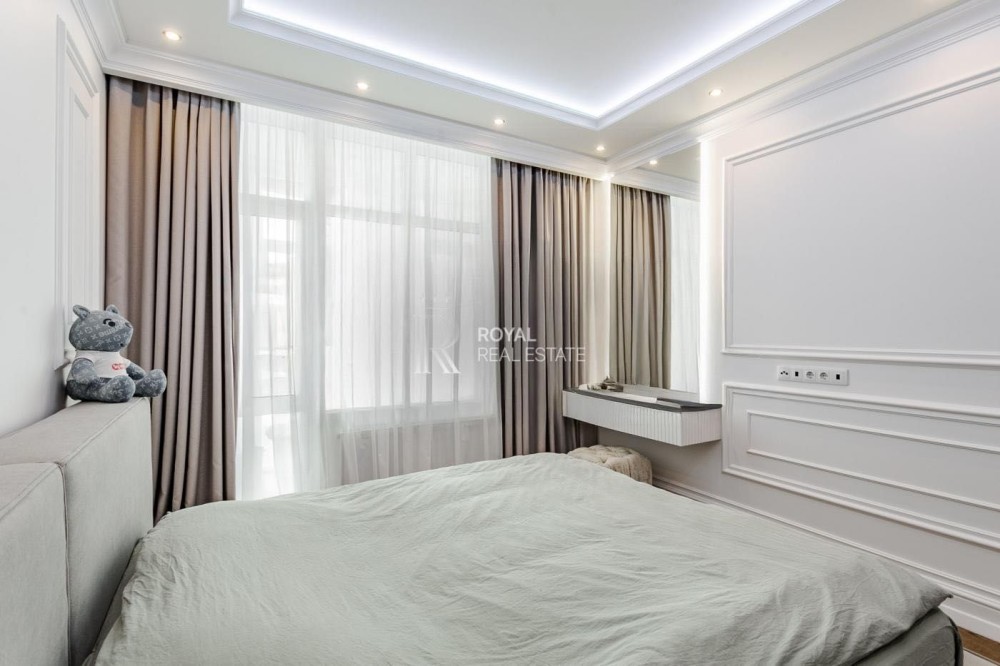- Інтер'єр на вищому рівні: квартира має високоякісний ремонт, багаторівневе освітлення та різноманітні функціональні рішення, такі як робочий куточок і зона відпочинку.