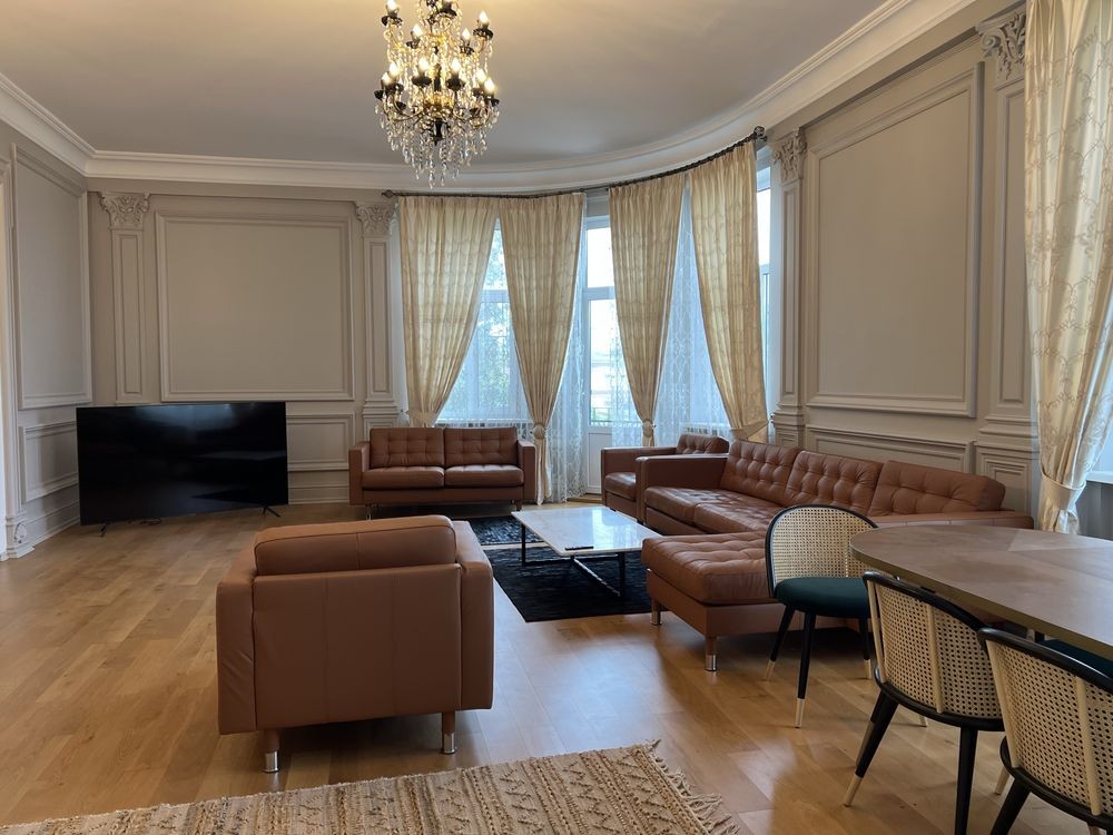 Якісний, класичний ремонт, відреставровані деревʼяні двері, паркет, вишукані меблі.