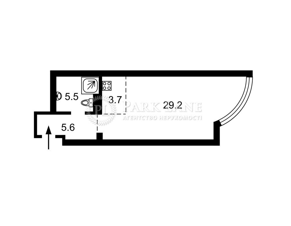 • Площа кухні 3.7 м2