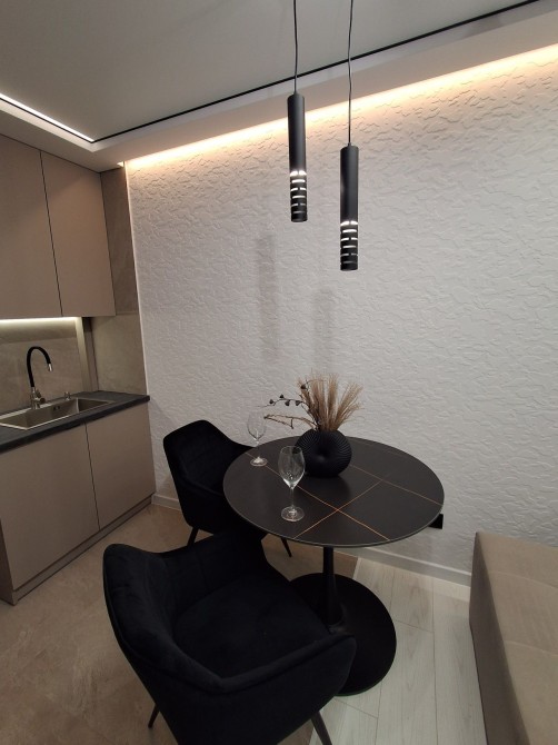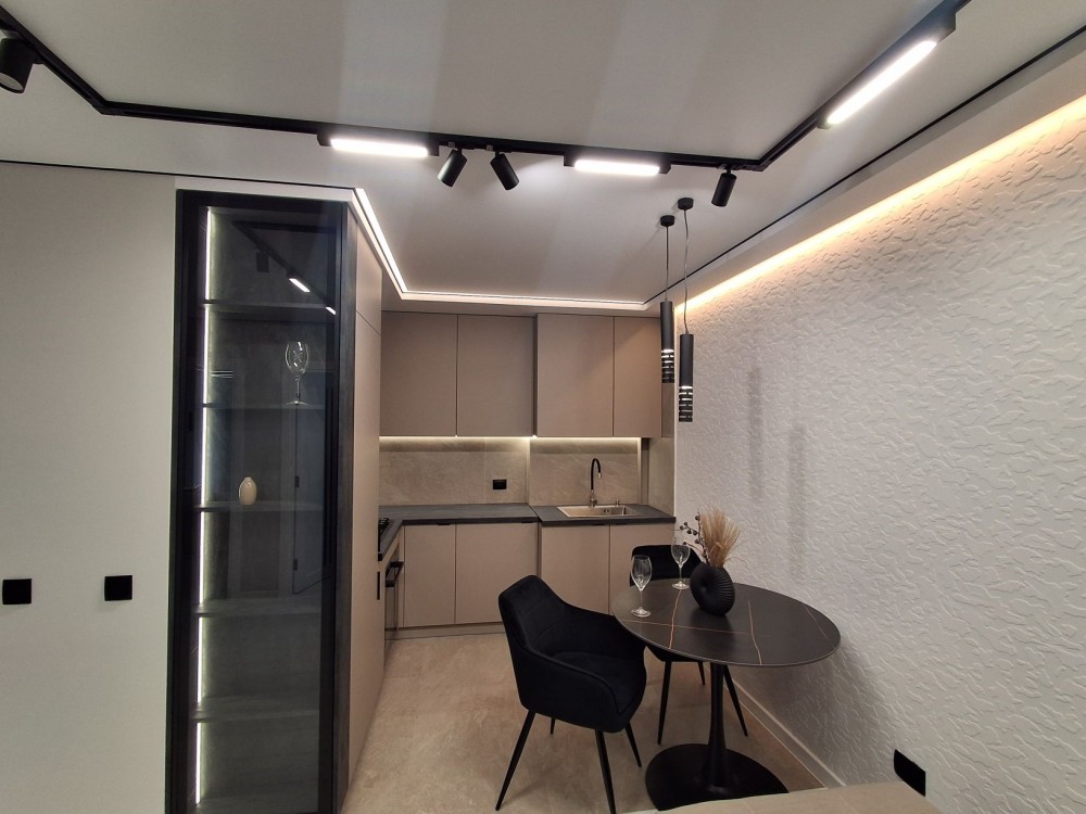 Двохкімнатна квартира і кухня-студія, дизайнерський ремонт, індивідуальне опалення і підігрів підлоги в зоні плитки. Кухня облаштована побутовою технікою, вмонтовані меблі, обідня зона. Зручний другий поверх. Підземний паркінг .