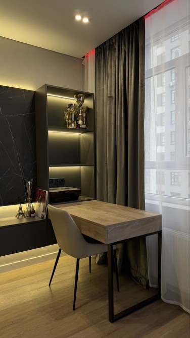 Укомплектована: бойлер, пральна машина, посудомийна машина, плита з духовою шафою, мікрохвильова піч, телевізори, витяжка.