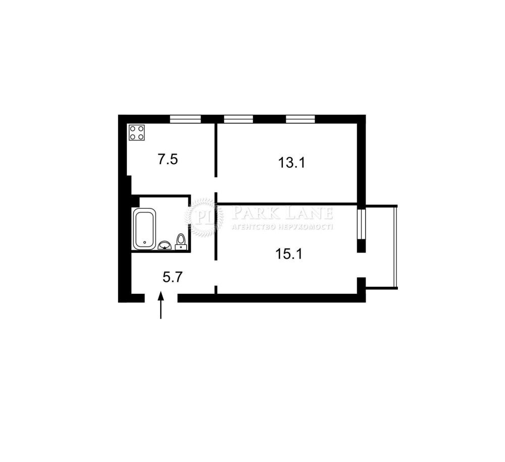 • Площа кухні 7.5 м2